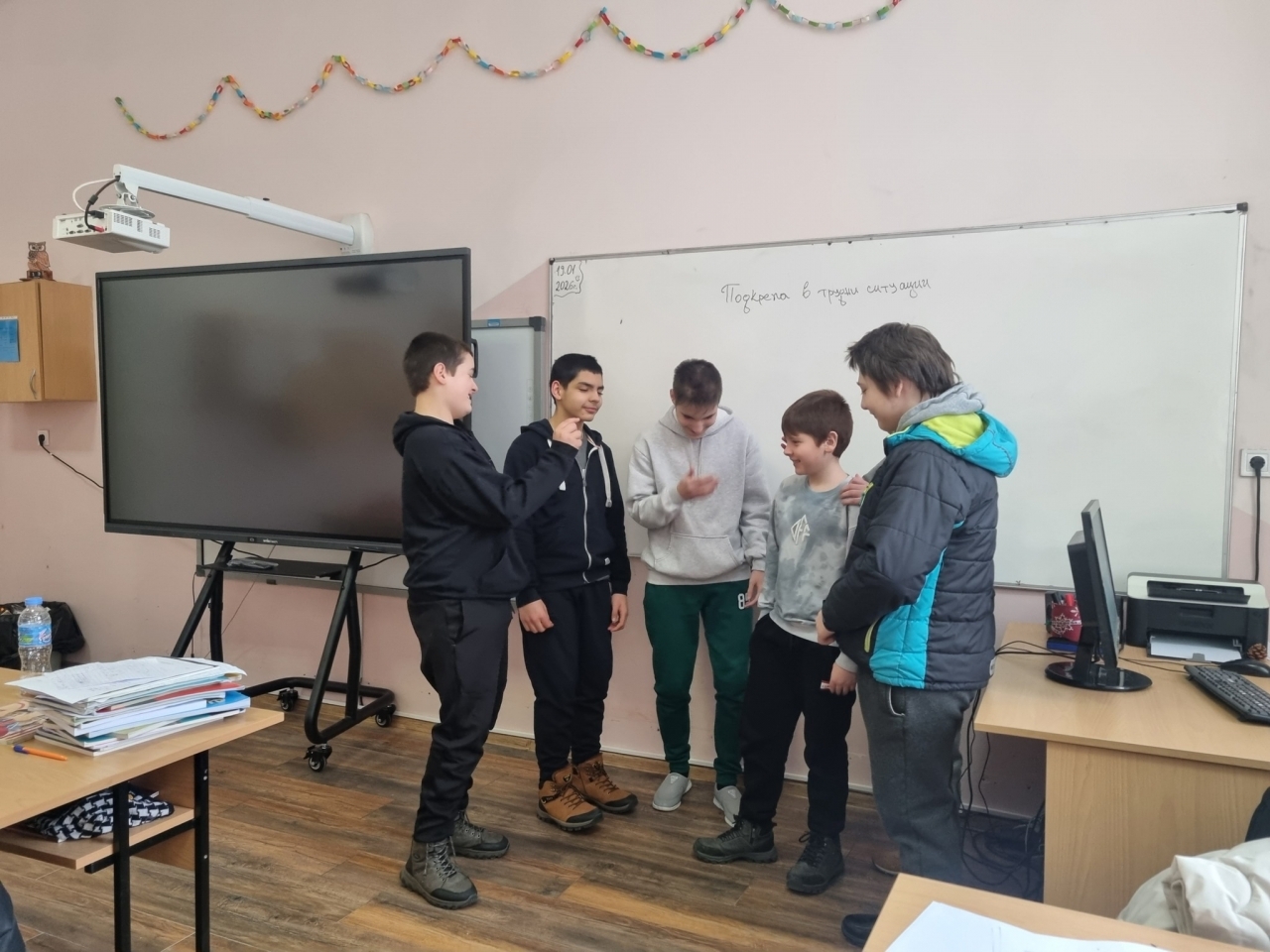 По време на занятието бе обсъдена ролята на подкрепата в трудни и рискови моменти от живота, както и начините за справяне със стреса, свързан с употребата на алкохол, наркотични и други психоактивни вещества. Чрез интерактивна работа в групи учениците разсъждаваха върху значението на почивката и отпускането, влиянието на силните емоции върху поведението и здравословните механизми за освобождаване от емоционалното напрежение.
