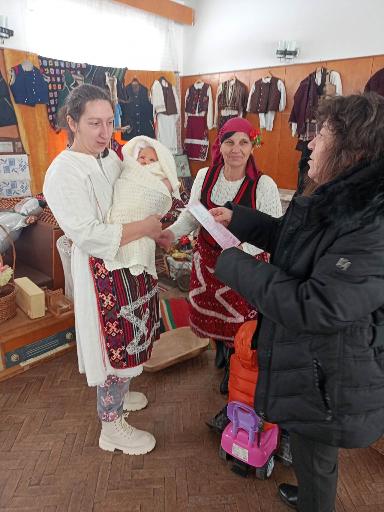 По обичай на този ден се посещава селският доктор, но тъй като в момента в Попина няма лекар, ритуалът бе пресъздаден по символичен начин. Новороденото бебе бе окъпано от най-скоро станалата баба, а по желание на майката детето бе именувано София. С тържествена атмосфера бе издаден и акт за раждане №1 от 21 януари 2026 г., който беше връчен лично от кмета на селото.