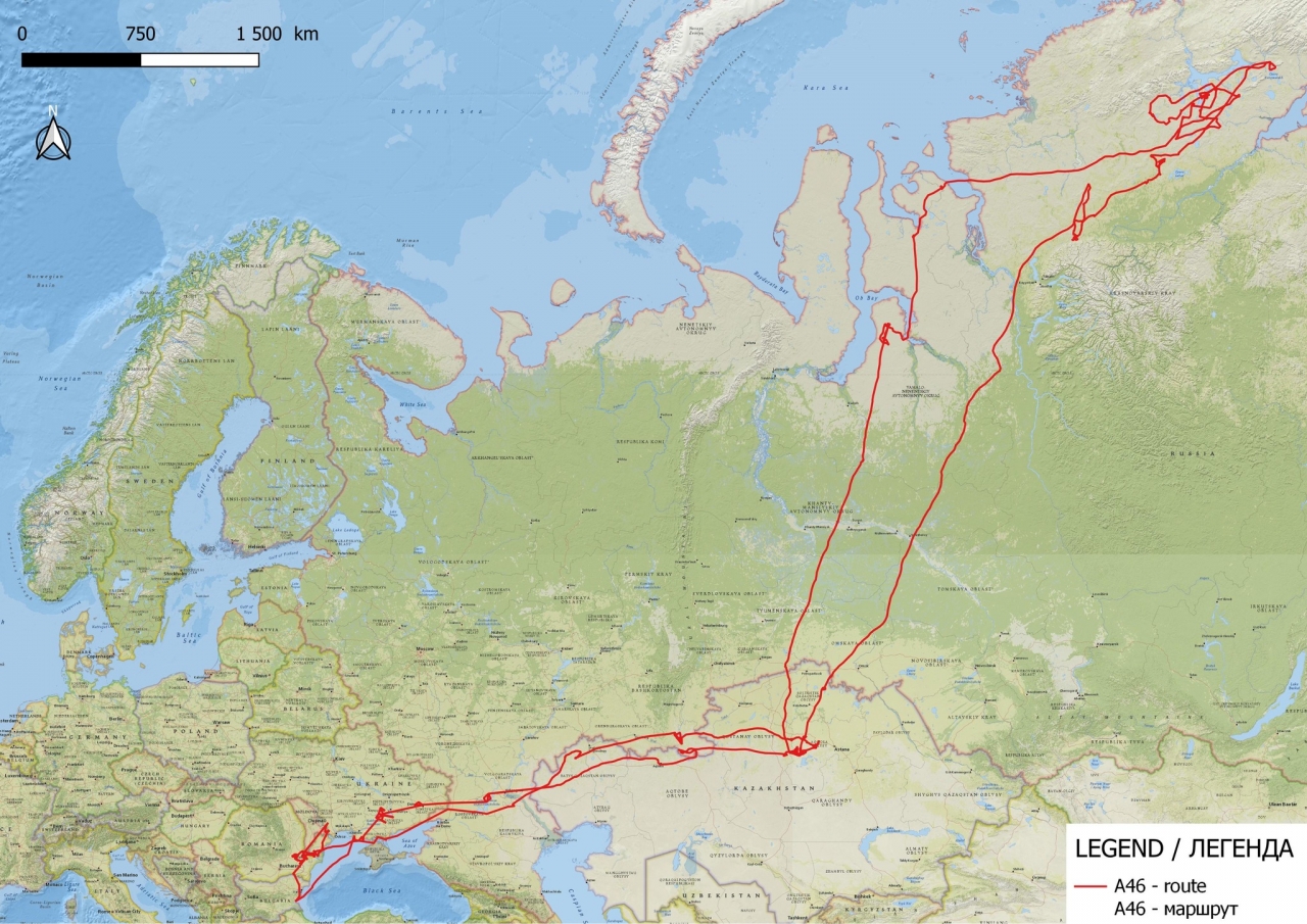 Според сателитните карти на екземпляра с код A46, само за един миграционен цикъл птиците изминават хиляди километри, борейки се с ветрове, хищници и променящ се климат. Тези "небесни пътешественици" ни напомнят колко е важно опазването на влажните зони по целия им миграционен път.