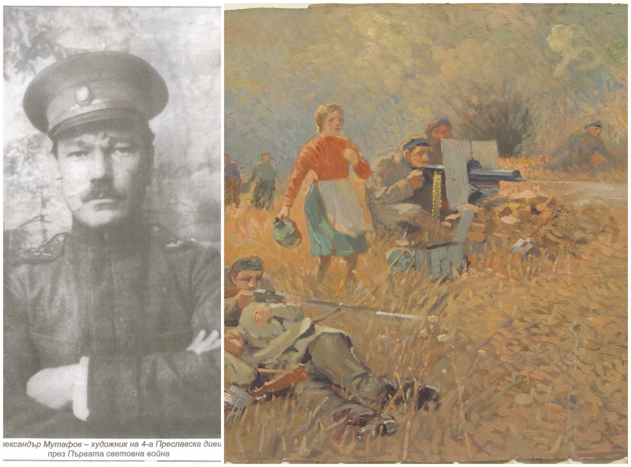 Сред тях е и Александър Мутафов – изтъкнат български художник и фронтови свидетел на бойните действия. Роден през 1879 г. в Шумен, Мутафов завършва живопис първо в Търново, а по-късно и в Мюнхенската художествена академия. По време на Първата световна война той е назначен за художник на 4-та пехотна Преславска дивизия, с която изминава целия ѝ боен път.