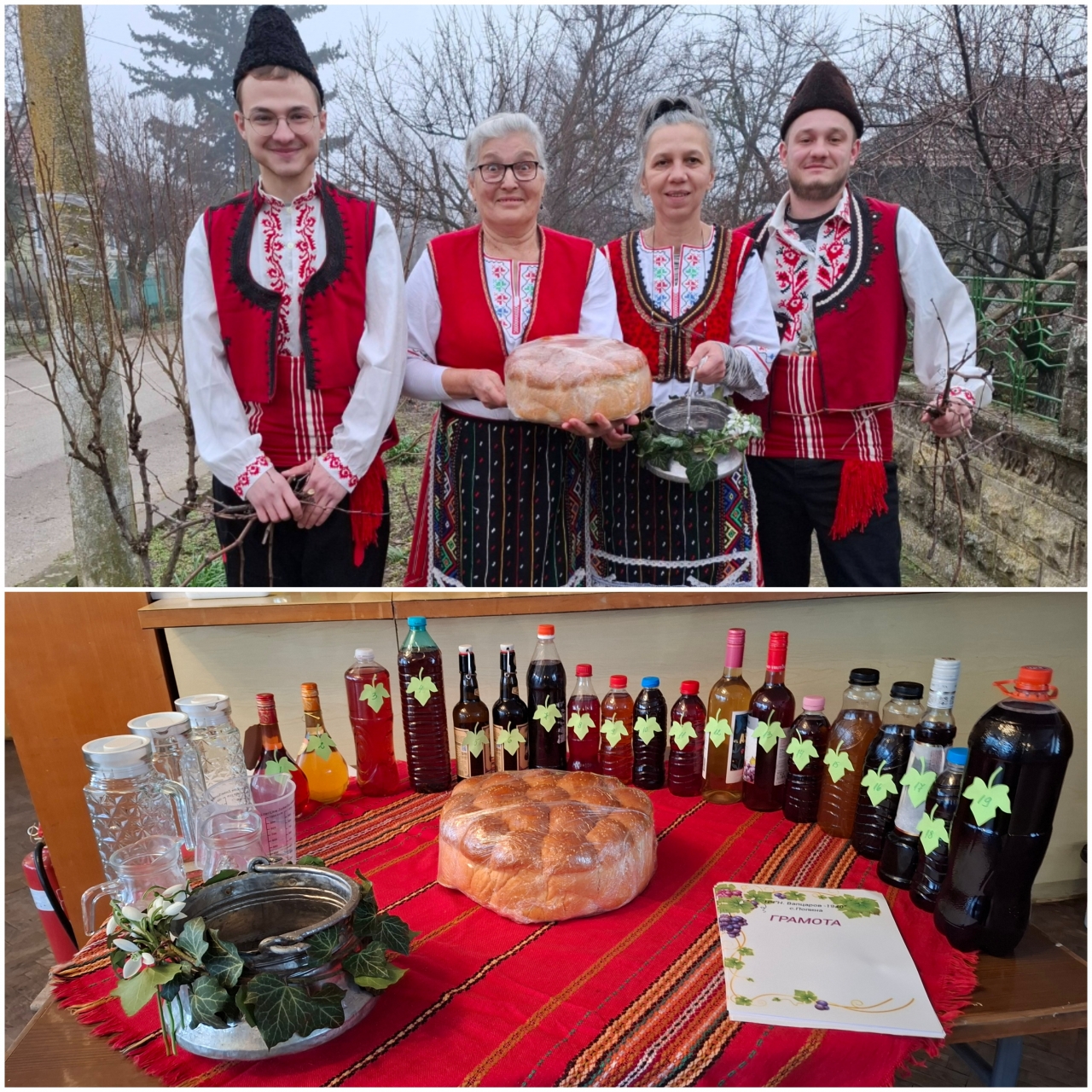 Както традицията повелява, празничният ден започна с ритуално зарязване на лозето, поливане с червено вино и отправяне на пожелания за берекет и добра реколта. Символиката на обреда отново събра жители и гости около вековните обичаи, свързани с труда на лозарите и надеждата за плодородна година.
