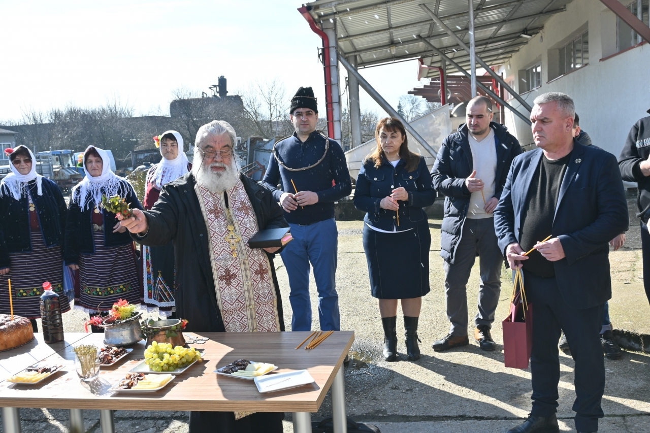 Отец Илия Тонков отслужи тържествен водосвет и благослови стопаните на избата и всички присъстващи, отправяйки пожелания за здраве, берекет и пълни бъчви с вино през годината.