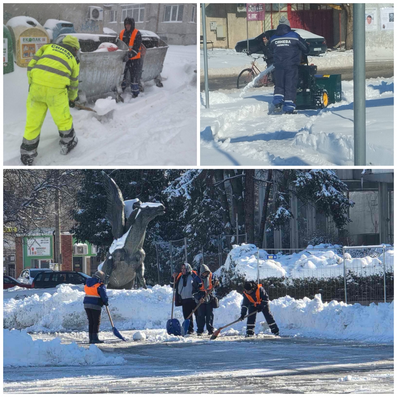 Екипите на предприятието работят както по почистването на уличната мрежа и тротоарите, така и по осигуряване на нормалното сметосъбиране в града. Служителите разчистват подходите към контейнери, спирки, обществени пространства и ключови участъци, а наличната техника е мобилизирана за отстраняване на натрупания сняг и лед.