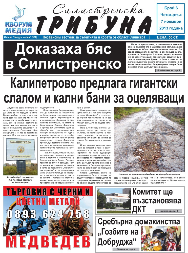В утрешния брой на вестник "Силистренска трибуна" очаквайте