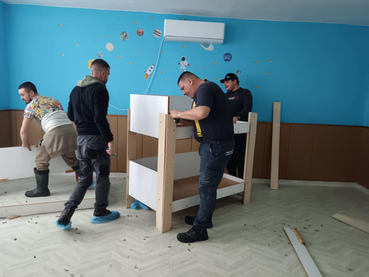 Обновяването е реализирано с активното съдействие на родителите, които безвъзмездно се включиха в процеса. Те помогнаха в разглобяването и изнасянето на старите легла, както и в пренасянето и подреждането на новото обзавеждане. Благодарение на тяхната ангажираност и подкрепа, промяната е осъществена бързо и организирано.