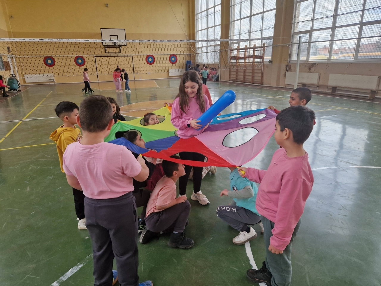 Цветният парашут се превърна в център на вниманието, а децата, редувайки се в различни роли, преживяха истинска спортна емоция. Освен физическата активност, учениците упражниха концентрация и сътрудничество, като се подкрепяха и насърчаваха взаимно.