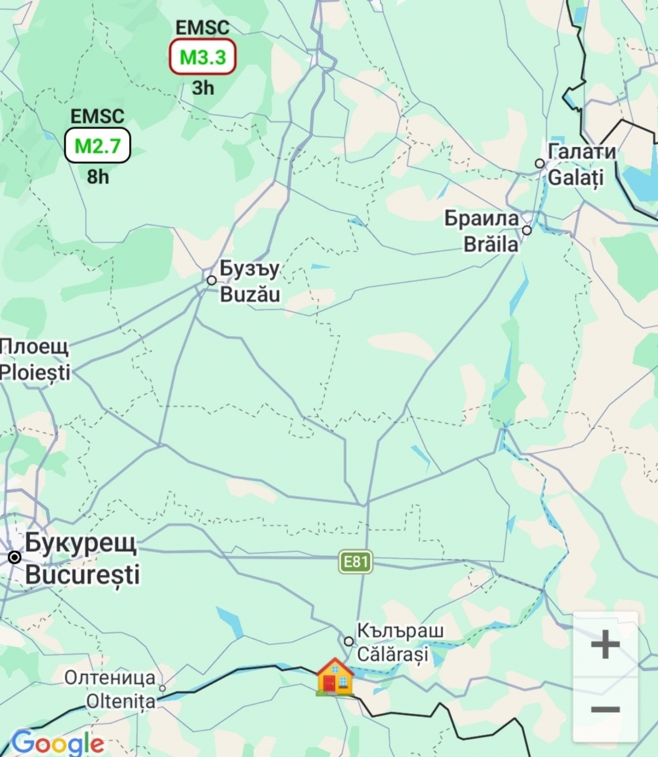 Първото земетресение е станало в 00:31 ч. българско време на 26 февруари с магнитуд 2.7 и дълбочина около 124 км. Епицентърът е в района на Фокшани, на приблизително 166 км от Силистра.