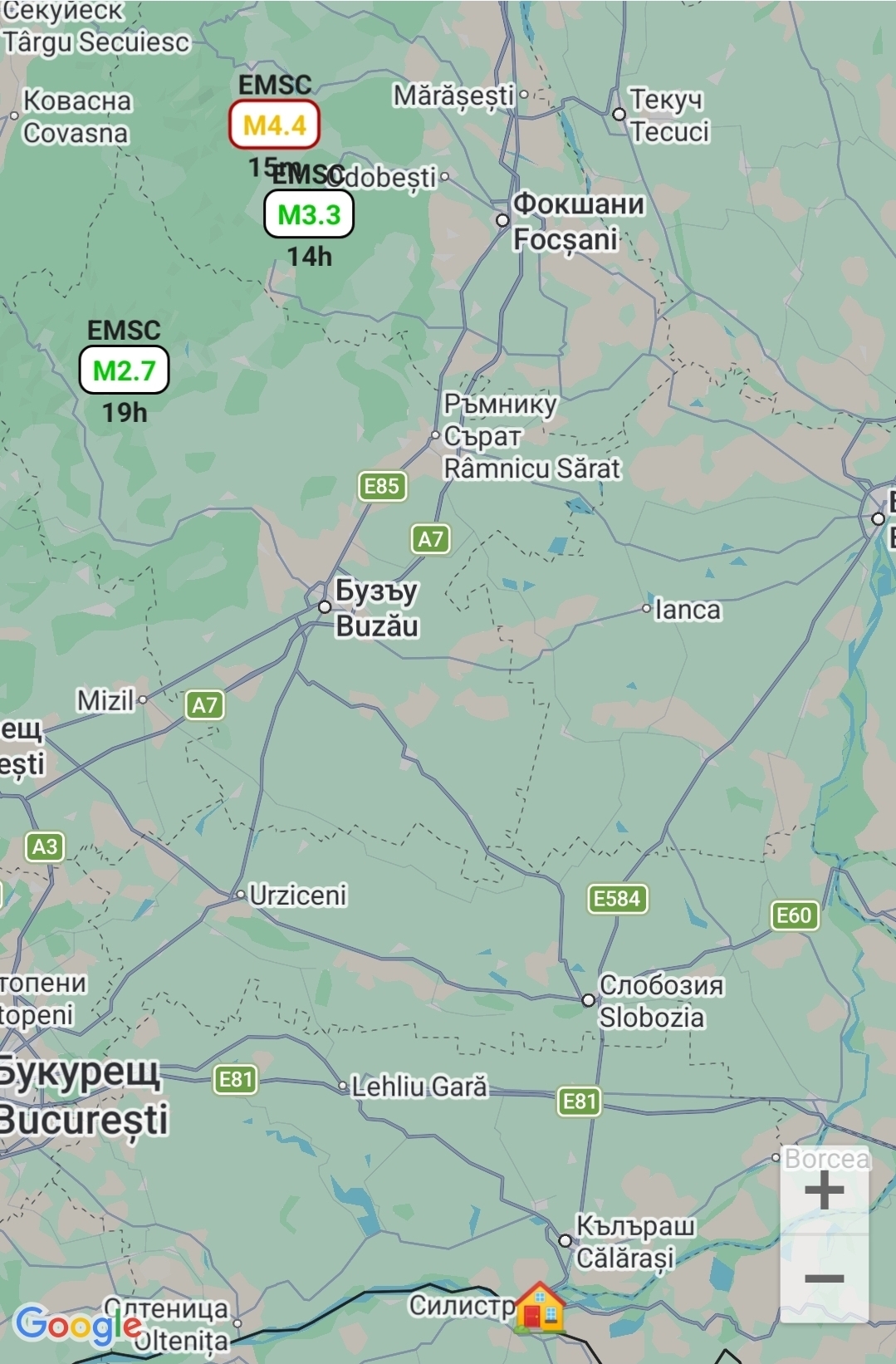 Ново земетресение беше регистрирано тази вечер в сеизмичната зона Вранча, Румъния. По данни на Европейско-средиземноморския сеизмологичен център (EMSC), трусът е с магнитуд 4,4 по скалата на Рихтер и е отчетен в 19:21 ч. българско време.