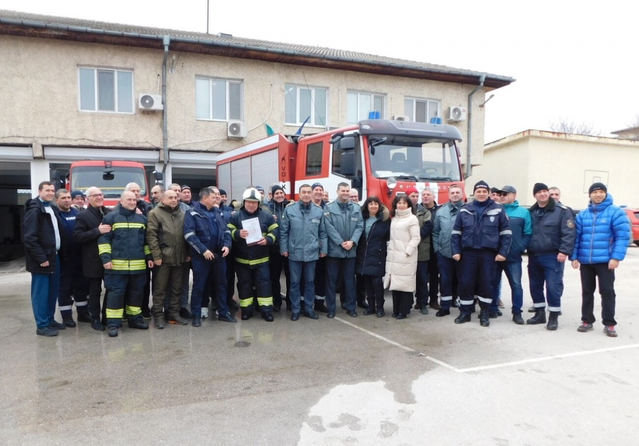 Под водни струи силистренските огнеборци изпратиха в заслужен отдих колегата си Георги Гебешев
