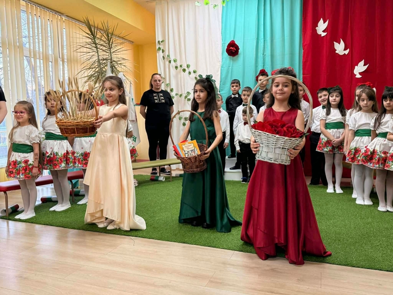 С много вълнение, искрящи очи и трепет в гласа малките възпитаници пресъздадоха духа на България. Патриотични стихотворения, песни и тематични изпълнения превърнаха сцената в жива картина в цветовете на националния трибагреник. Всяко изречено слово и всяка нота бяха израз на признателност към героите, извоювали свободата на страната ни.