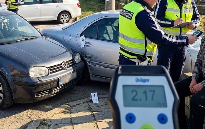 Дрегерът отчете 2.17: Арестуваха пиян шофьор, блъснал автомобил в Калипетрово