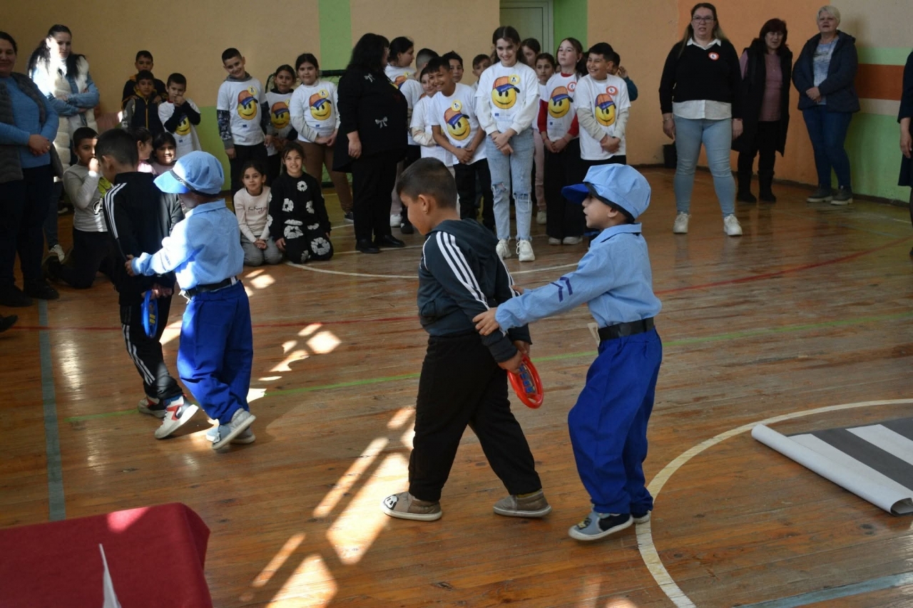 Чрез различни игрови и състезателни задачи учениците разпознаваха пътни знаци, обсъждаха правилното поведение на пешеходците и упражняваха знанията си за безопасно пресичане на пътното платно.