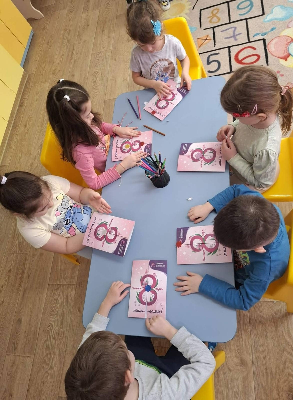 Малките деца оцветиха и украсиха картичките, след което ги подариха на своите майки и баби. Така те отправиха послание, изпълнено с любов и внимание, като същевременно напомниха колко е важно жените да се грижат за своето здраве.