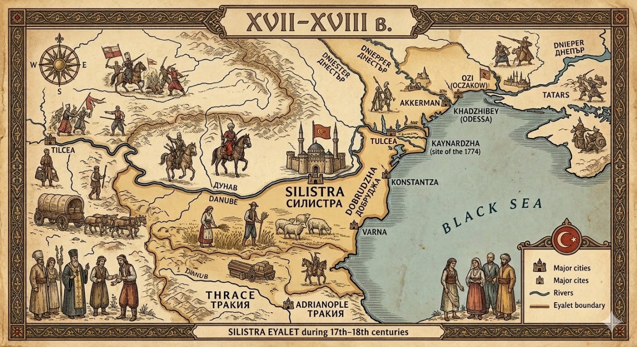 През XVII и XVIII век днешният спокоен крайдунавски град Силистра е бил туптящото сърце на огромна военно-административна област в рамките на Османската империя. Историческите данни и запазените карти от епохата разкриват мащабите на Силистренския еялет, който е обхващал територии от Тракия чак до долното течение на река Днепър, превръщайки Добруджа в ключов геополитически регион.