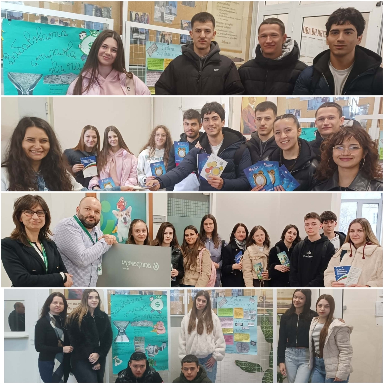 Учениците от 12. б клас също имаха важна роля в инициативата – те подготвиха и раздадоха информационни материали, свързани с финансовата култура. По този начин допринесоха за разпространението на полезни знания сред училищната общност.