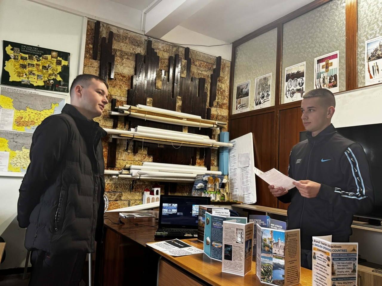 Иновативен урок по английски език превърна класната стая на СУ "Васил Левски" в Дулово в пъстро и вдъхновяващо пространство, изпълнено с идеи за пътешествия, култури и нови хоризонти. Дванадесетокласниците от 12.а клас реализираха проект под надслов "С раница, карта и въображение: едно пътешествие в класната стая".