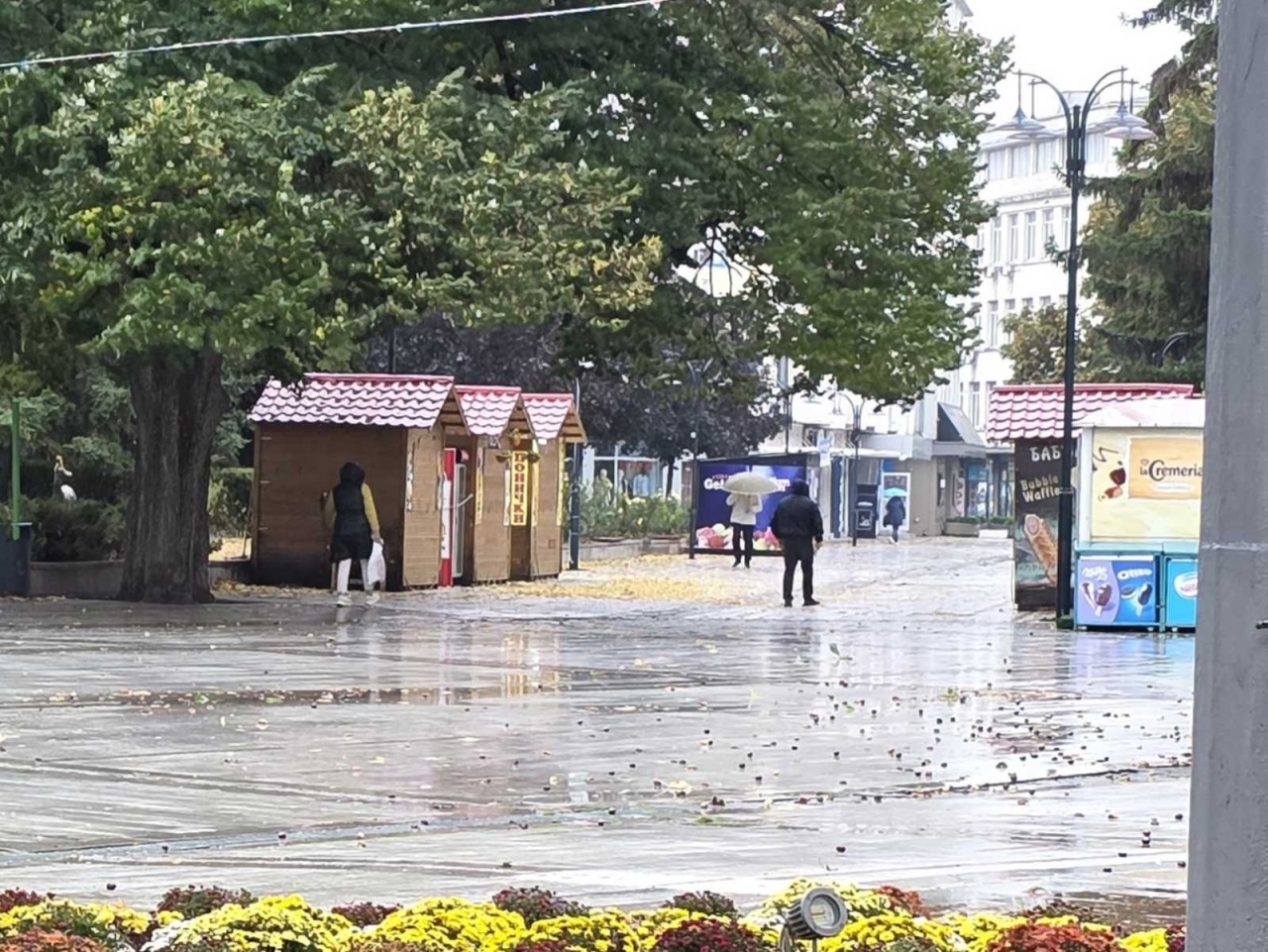 Обстановката предполага по-хладен и влажен ден, което изисква подходящо облекло и внимание при планиране на дейностите на открито.