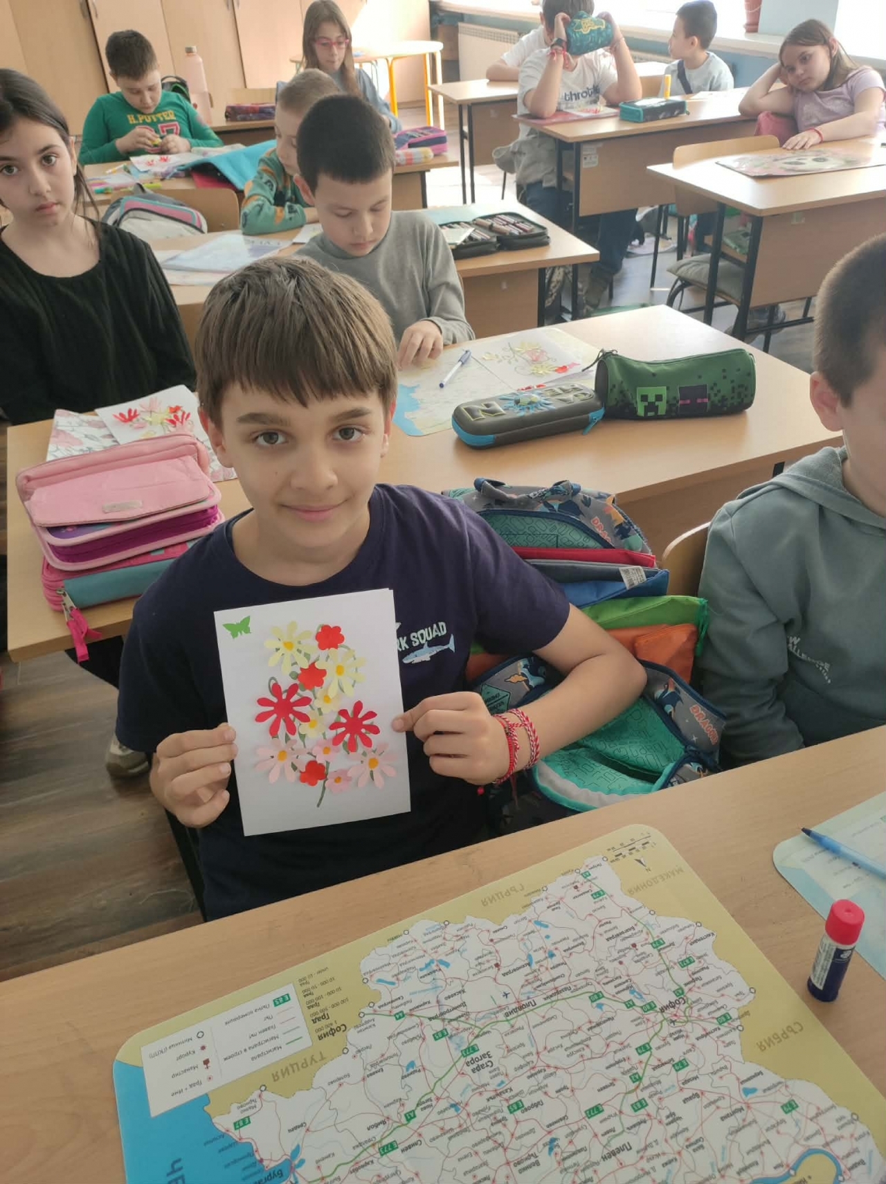 В практическата част всички участници изработиха красиви пролетни картички, които украсиха с тематичен краснопис и посветиха на своите близки и приятели.