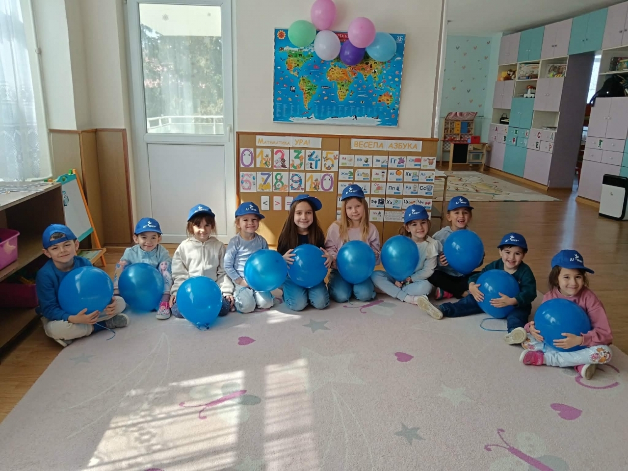 Детската градина се преобрази в синя палитра, напомняща за безкрайното небе и необятния океан. Децата се включиха с разнообразни сини акценти в своето облекло и визия, като по този начин внесоха усещане за уют, вдъхновение и позитивна енергия.