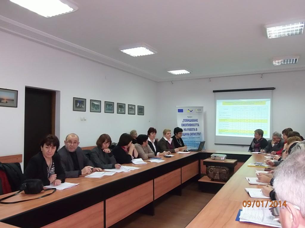 В заседателната зала на Общинска администрация - Силистра се проведе първата за годината среща с представители на специалисти в областта на образованието, директори на професионални гимназии и училища, на РИО на МОН и синдикалисти. Основна тема на дискусията, след мултимедийно онагледяване на статистиката по проблема, бе изготвяне на план приема за следващата учебна2014-2015г. Разговорът визираше и бъдещето на професионалното образование, броят на учениците и на паралелките в съответните училища на територията на общината на фона на демографската криза в страната, в региона и в общината ни.