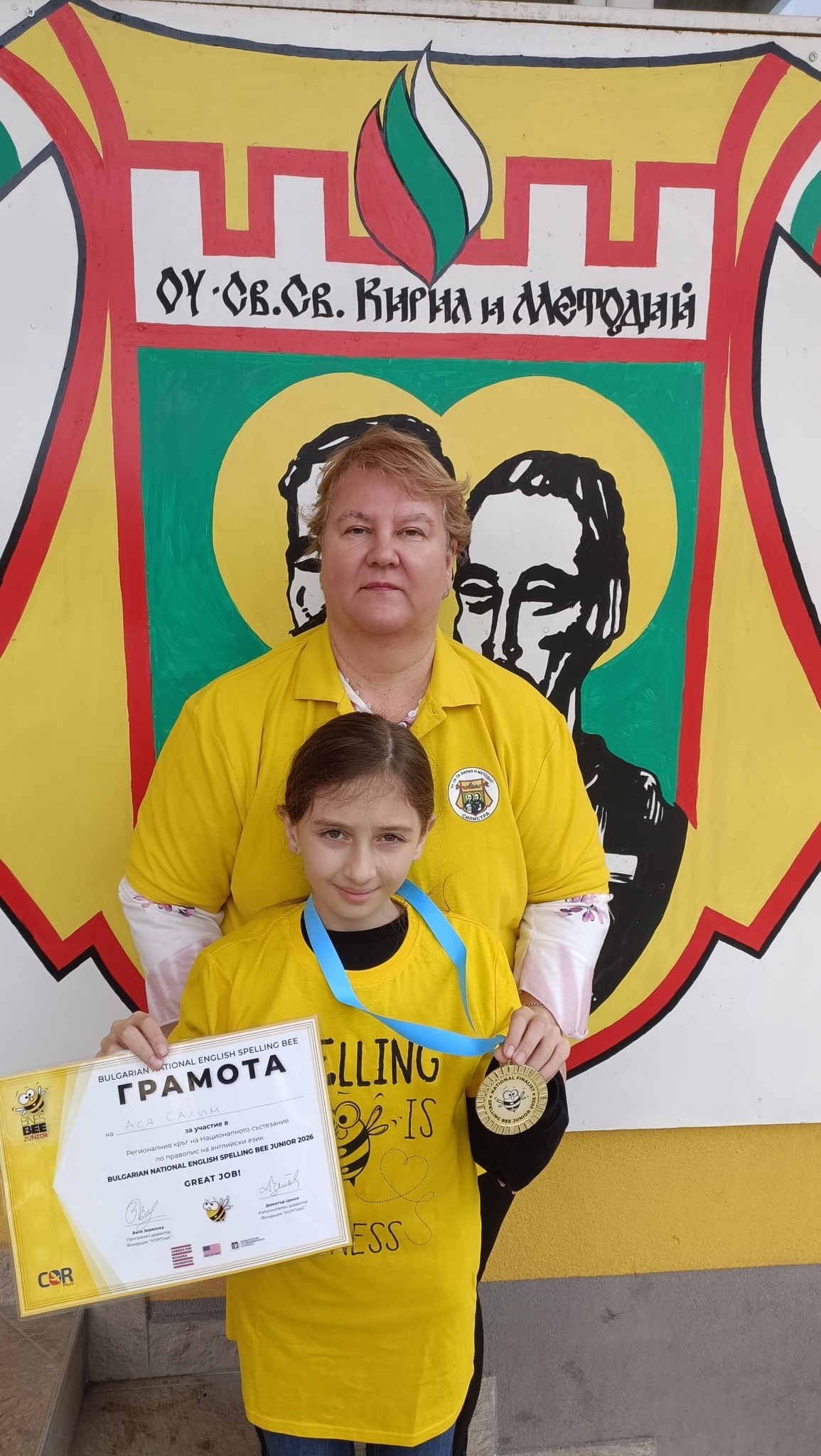 Четвъртокласничката Ася Салим, с преподавател по английски език Милка Мезева, заслужено се класира за националния финал на престижното състезание по спелуване. Регионалният етап се проведе на 28 март 2026 г. в град Варна и събра най-добрите ученици от Североизточна България.