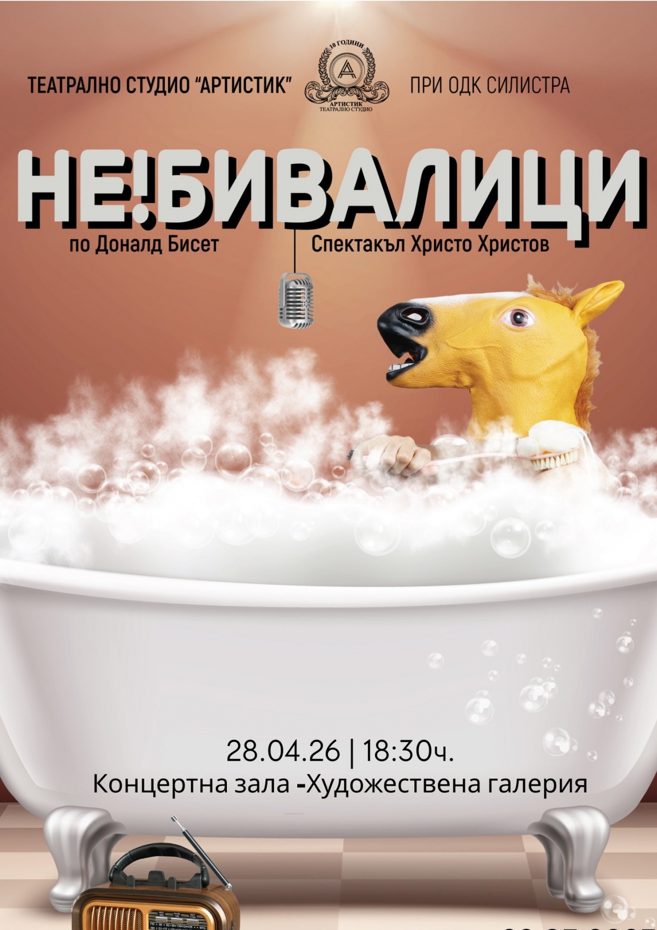 Театрално студио "АРТИСТИК" отново ще зарадва публиката в Силистра със спектакъла "НЕ!БИВАЛИЦИ", създаден по текстове на Доналд Бисет и режисиран от Христо Христов.
