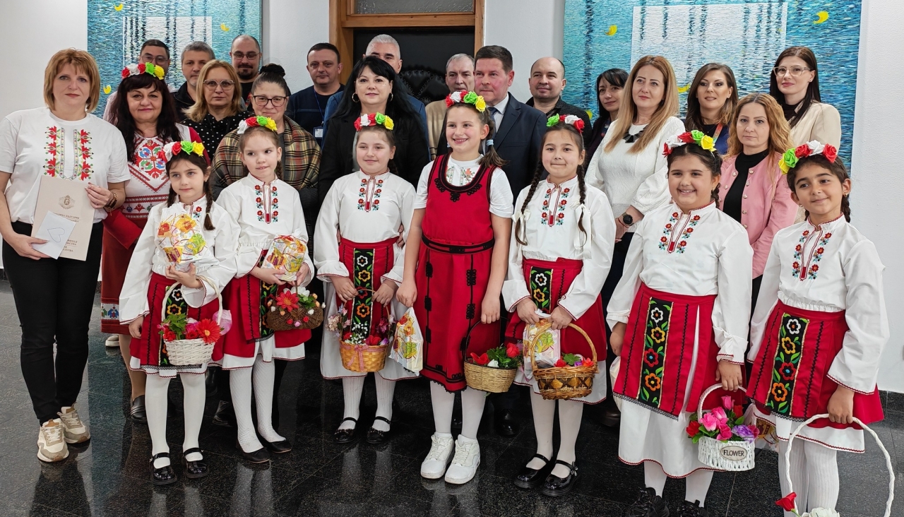 Деца от 2-ри клас на ОУ "Отец Паисий", пременени в пъстри народни носии, пресъздадоха традиционния български обичай "лазаруване" и внесоха радост сред служителите на институцията.