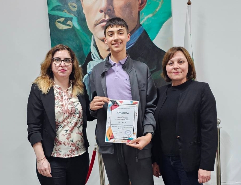 Седмокласникът Али Мехмед получи грамота от конкурса "Магията на геометричните тела"