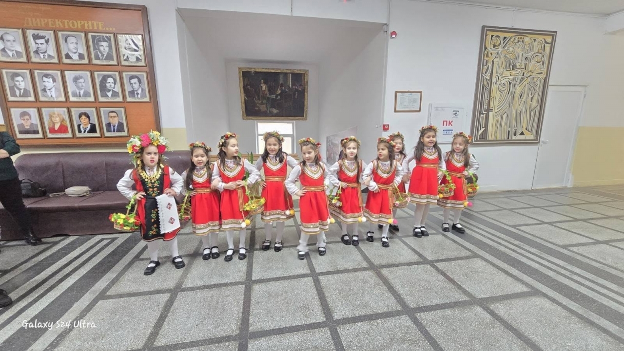 Специални гости на училището бяха малките лазарки от ДГ "Мир", които внесоха духа на традицията с пъстри носии, песни и наричания за здраве и благополучие. Техните изпълнения създадоха истинска празнична атмосфера и предизвикаха усмивки у всички присъстващи.