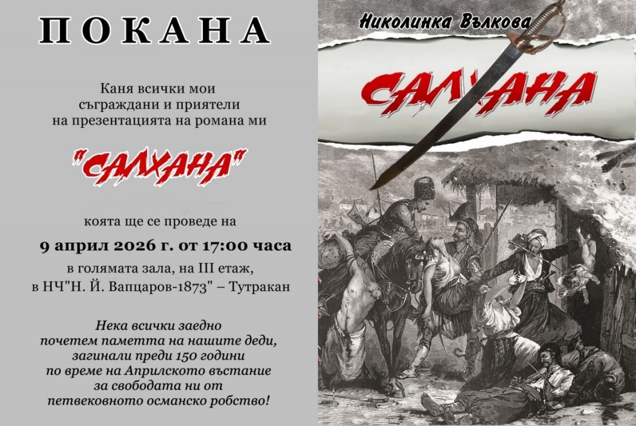 Жителите и гостите на Тутракан ще имат възможност да присъстват на представянето на романа "Салхана" от авторката Николинка Вълкова.