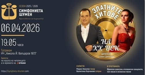 Една незабравима музикална вечер очаква жителите и гостите на Тутракан на 6 април, когато на сцената на НЧ "Никола Й. Вапцаров – 1873" ще прозвучат "Златните хитове на ХХ век".