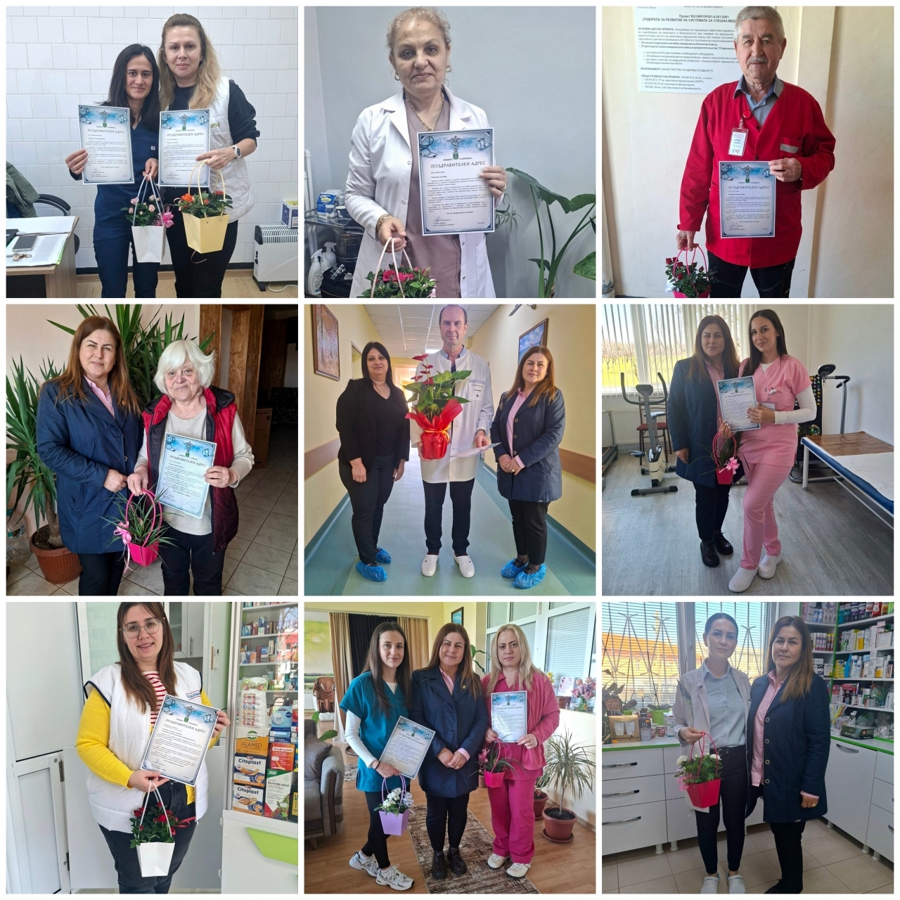 Поздравителни адреси и цветя за лекарите и здравните работници