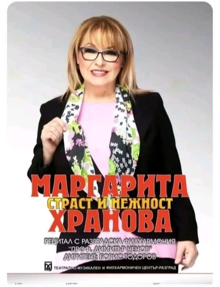 На 30 април от 19:00 часа в залата на Община Силистра жителите и гостите на града ще имат възможност да се насладят на концерт-спектакъла "Страст и нежност" с участието на обичаната българска певица Маргарита Хранова.