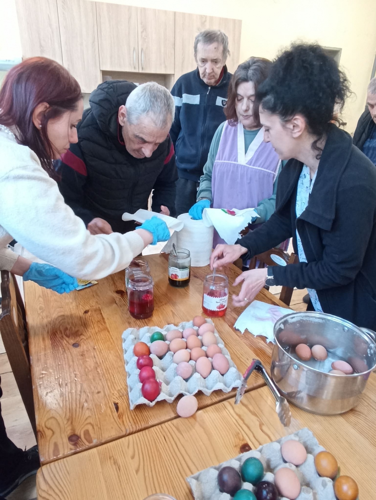 Служителите и потребителите на Центъра за настаняване от семеен тип за пълнолетни лица с психични разстройства в село Айдемир пресъздадоха една от най-красивите български традиции – боядисването на яйца за Великден.