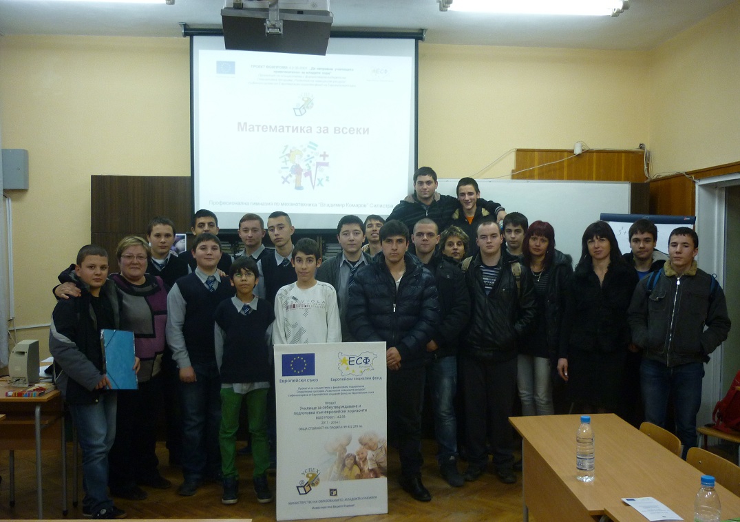 Извънкласната клубна дейност "Математика за всеки" с ръководител Даниела Богданова, по проект "Успех" е финансиран от Оперативна програма "Развитие на човешките ресурси" и съфинансирана от Европейски социален фонд на Европейския съюз.