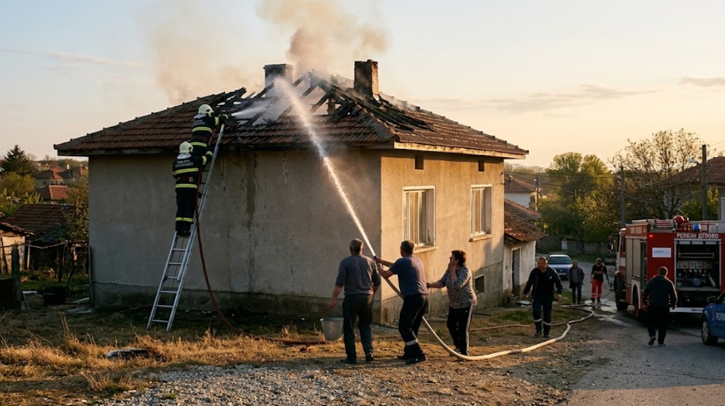 Пожарникари и местни жители спасиха къща от изпепеляване в село Межден