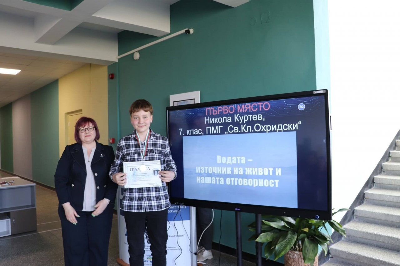 Отличието е за Никола Красимиров Куртев от VII клас, който се класира на първо място в категория "Компютърна презентация". Състезанието се проведе в Силистра и събра участници от различни училища в страната.