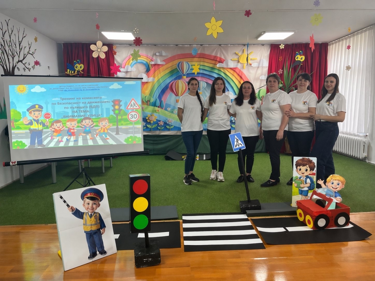 Вътрешно-квалификационен тренинг на тема "Внимание: Улица!" проведе Комисията по безопасност на движението по пътищата (БДП) в ДГ "Св. св. Кирил и Методий" – Главиница.