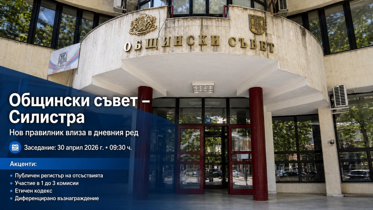 На предстоящото си заседание, насрочено за 30 април 2026 г. (четвъртък) от 09:30 часа, Общински съвет – Силистра ще разгледа важна докладна записка. Една от ключовите точки в дневния ред е приемането на актуализиран проект на "Правилник за организацията и дейността на Общински съвет – Силистра".