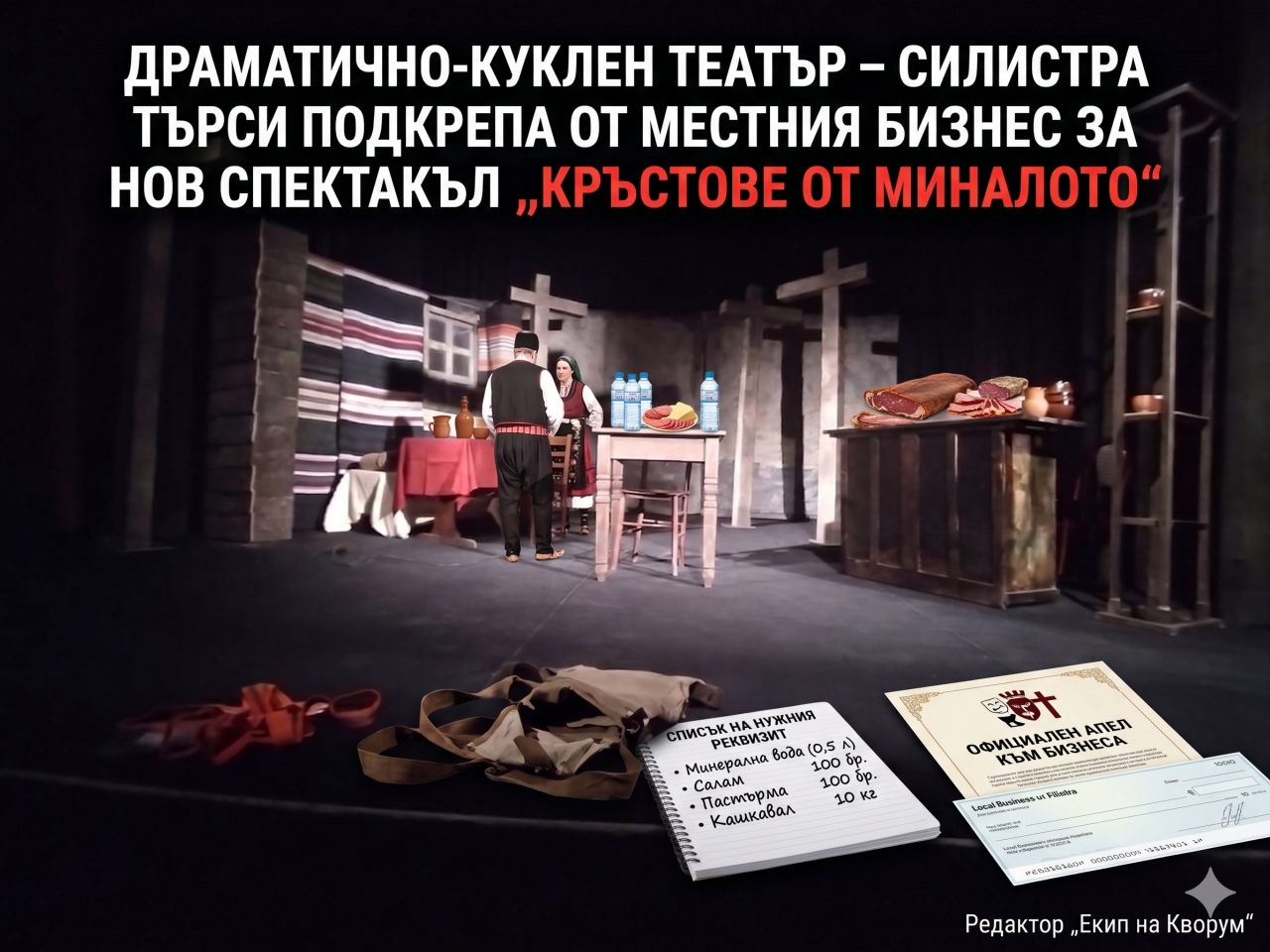 Драматично-куклен театър – Силистра отправи апел към местния бизнес за подкрепа във връзка с предстоящата премиера на новия спектакъл "Кръстове от миналото" от Красимир Тодоров.