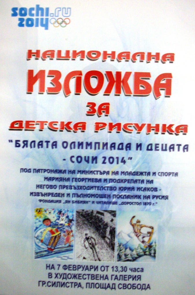 В Градската художествена галерия в Силистра за пръв път е аранжирана националната изложба с рисунки на тема "Бялата олимпиада в детските очи", която се провежда за пореден път и тази година е посветена на зимната олимпиада в руския град Сочи. На 7.02.2014 г., в деня на откриването на най-голямото в света спортно събитие в сферата на зимните спортове, ще бъдат наградени със специални медали близо 40 "първенци" в своеобразната надпревара, определени от жури, председателствано от скулптора Йордан Колев. Наградените са подбрани от представените над 550 творби – живопис, графика и приложно изкуство от повече от 30 населени места в България, вкл. и от Украйна.