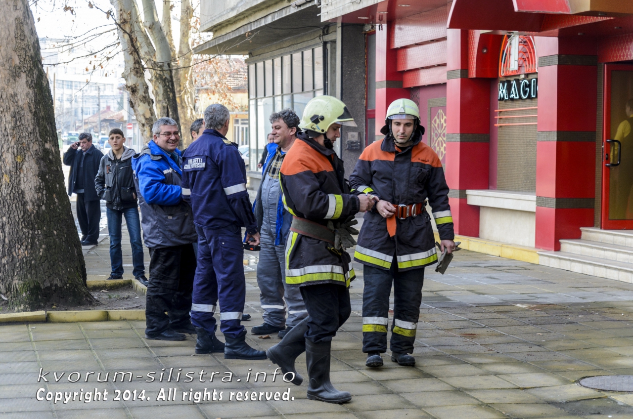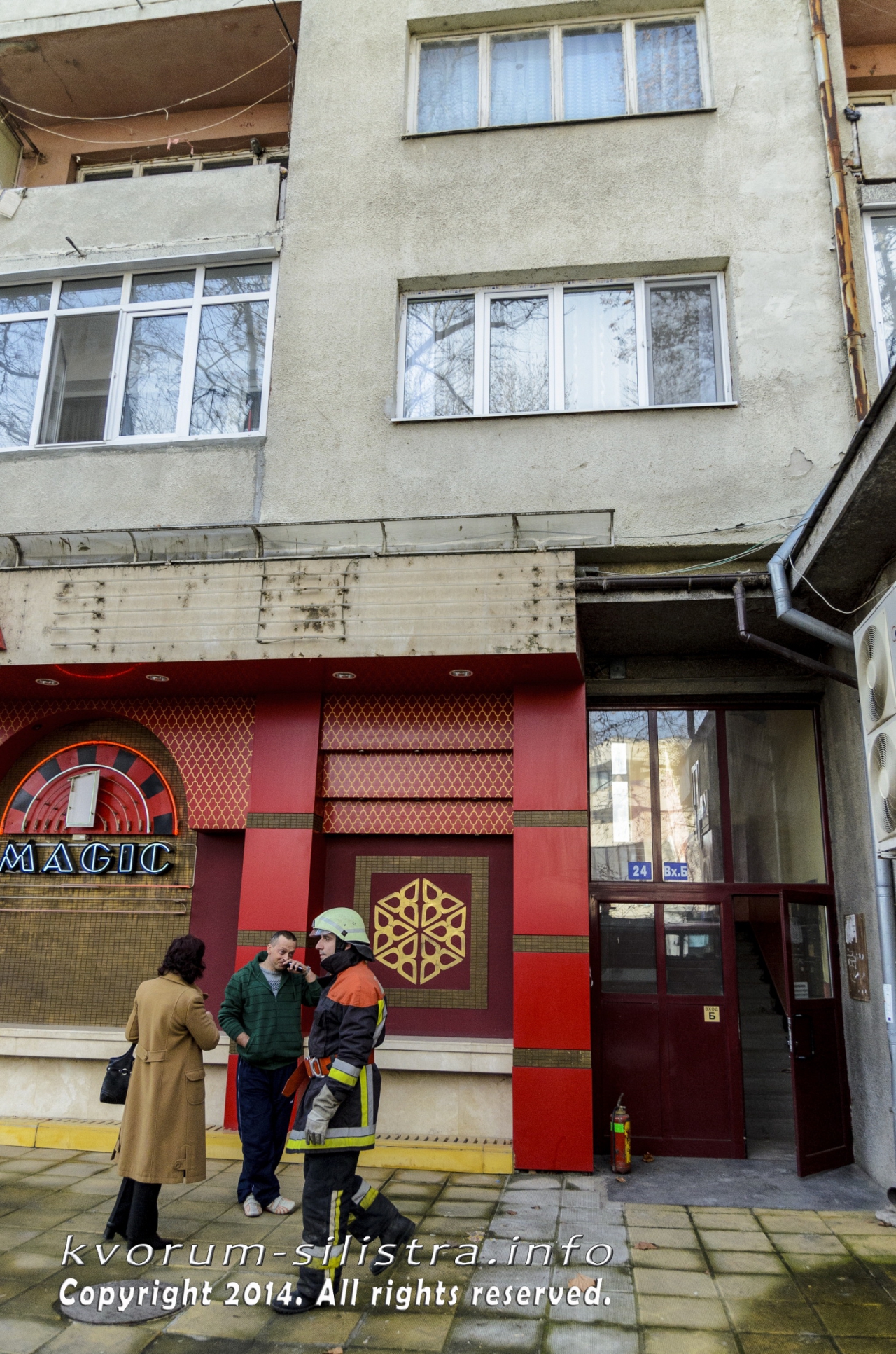 Пламъци и гъст дим се разтелиха вчера по обяд в центъра на Силистра. Огънят, идващ от жилищен блок по ул. "Хаджи Димитър" /зад бившия м-н "Валентина"/, не на шега стреснал обитателите му. Пламъците тръгнали от намиращото се на входа на многоетажната жилищна сграда електрическо табло, научи "Силистренска трибуна". Сигналът за пожара е подаден в 13.48 часа. На място веднага е пристигнал протовопожарен автомобил с 3-ма огнеборци , които за минути са загасили пламъците. Няма пострадали. Напълно унищожено обаче е електрическото табло. Предстои да бъдат изяснени причините за пожара.