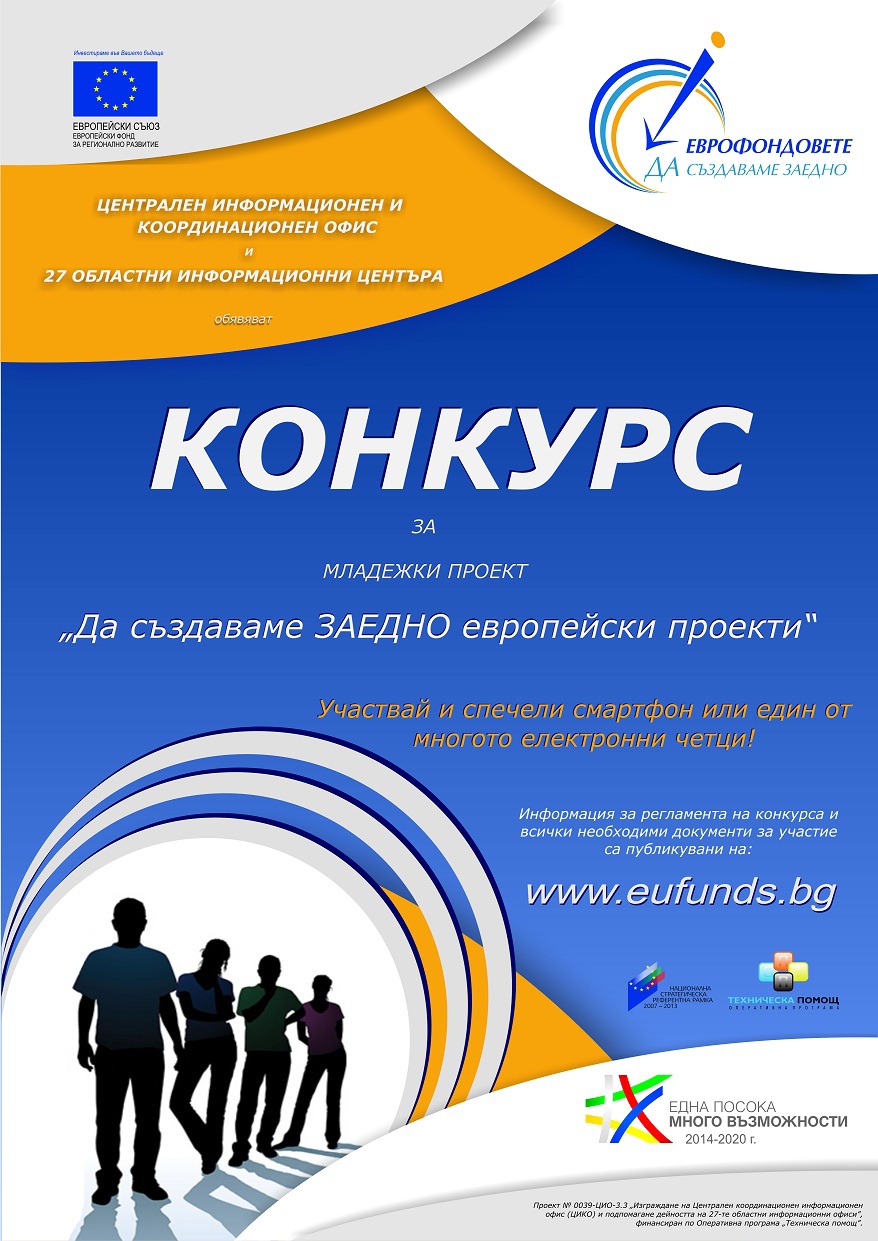 Мрежата от 28 информационни центъра за популяризиране на Кохезионната политика на Европейския съюз в България обявява национален конкурс за младежки проекти под мотото "Да създаваме ЗАЕДНО европейски проекти". На регионално ниво, в област Силистра, конкурсът се осъществява с ключовата роля на Областен информационен център – Силистра (ОИЦ), който ще разпространява информация за инициативата до всички целеви групи и ще организира провеждането на регионалния кръг.