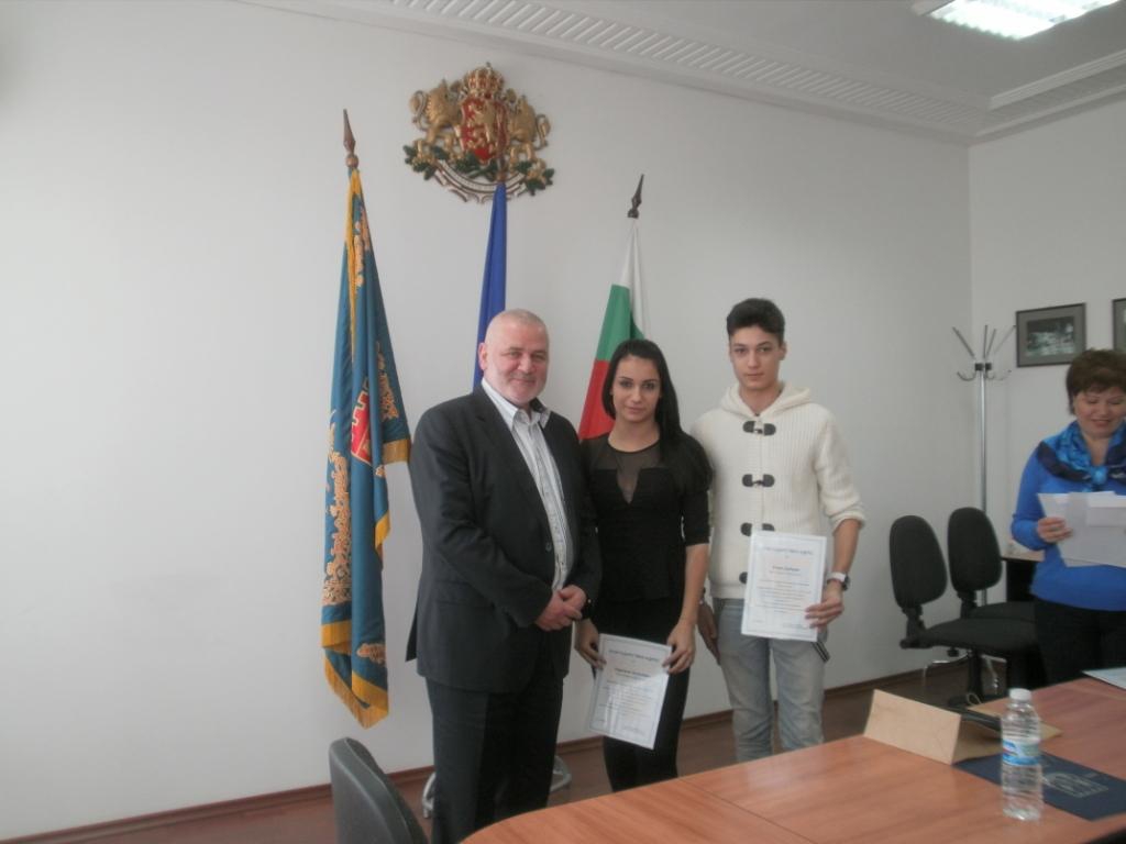 Кметът и г-жа Михайлова поощриха с парична награда и благодарствен адрес всички отличени от състезания спортисти за първото тримесечие на годината. Те са: Адриана и Илия от клуб по спортни танци "Елеганс", които донесоха първо място и медали за Силистра.