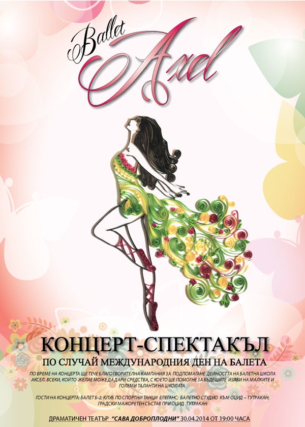 Школа по модерен балет "Аксел" към ОДК - Силистра кани гражданите и гостите на града на своя концерт - спектакъл, посветен на Международния ден на балета. Концертът ще се състои на 30 април 2014 година (сряда) в драматичния театър "Сава Доброплодни" от 19:00 часа.