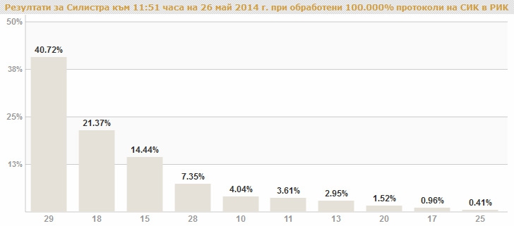 В Силистренска област са гласували 46 542 души. Действителните гласове са 44 019, а невалидните бюлетини - 2 523. Изборният ден в областта е преминал спокойно, посочи Боян Димов. Той уточни, че в РИК-Силистра през вчерашния ден са постъпили четири жалби - три за неправомерна агитация и една за недопускане на наблюдатели в СИК. При извършените проверки не са установени доказателства за описаното в жалбите.