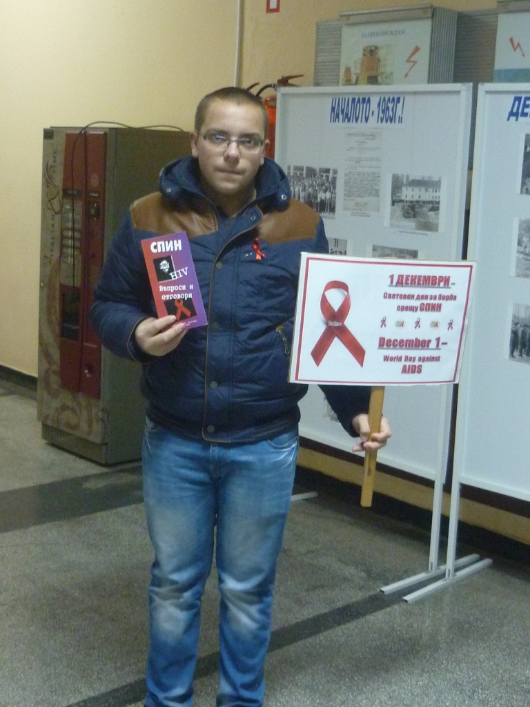 По традиция, преди първия учебен час, на 1 декември се раздадоха листовки на АНТИСПИН кампанията за 2014 г. , презервативи, картички и червени лентички в знак на съпричастност към жертвите на болестта.