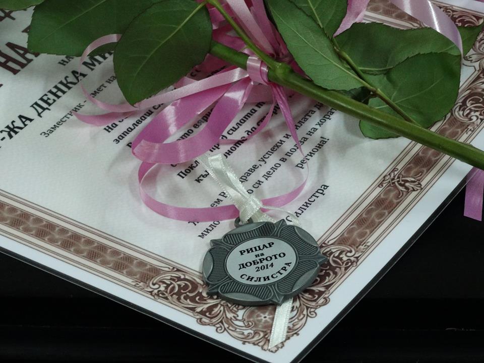 Заместник- кметът "Хуманитарни дейности" ,г-жа Денка Михайлова, д-р Мария Димитрова, председател на Общински съвет -Силистра, г-н Ахмед Омар- предприемач, г-жа Юлия Чакърова- учител, г-н Димитър Христов,г-жа Деси Петрова- нотариус, г-н Пламен Николов- предприемач, г-жа Велика Славова и др. бяха удостоени с приза"Орден на доброто" и всички те бяха обявени за Рицари на доброто днес/ 9 декември 2014г./ на церемония, организирана от Местната комисия за борба с противообществените прояви на малолетни и непълнолетни към Община Силистра и младежите от Обединено общежитие за средношколци "Младост".