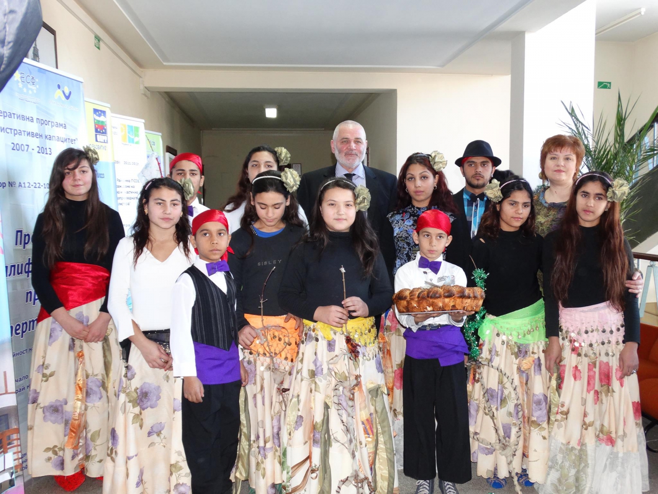 Учениците от ОУ "Св. Климент Охридски"- село Проф. Иширково бяха посрещнати от кмета д-р Юлиян Найденов. Децата, които се обучават в СИП "Фолклор на етносите - ромски фолклор, наричаха за здраве и сполука на ромски и български език и сурвакаха, както домакина, така и част от ръководството - заместник-кмета г-жа Денка Михайлова, секретаря г-н Ростислав Павлов и началника на отдел "Култура" г-жа Цветана Игнатова. От своя страна домакините.