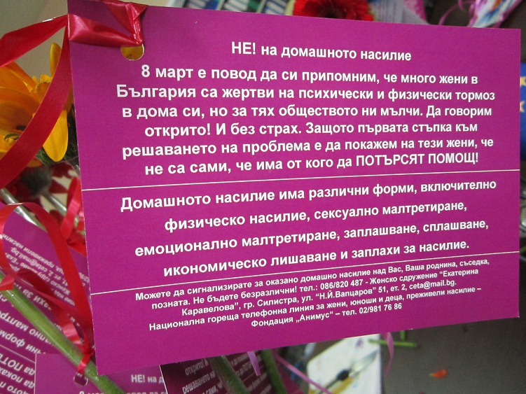 "Уважението към жената – майка, професионалист и лидер – не е само за един ден. Затова именно на 8 март решихме да припомним, че в България продължава повече да се мълчи по темата за домашното насилие. В картичките, които подаряваме на дамите, са посочени координатите на Женско дружество в Силистра, както и национална гореща линия за жени, претърпели насилие. Темата е болезнена и тъкмо заради това има нужда да бъде коментирана", каза областният координатор на МГЕРБ-Силистра Ивелин Неделчев.